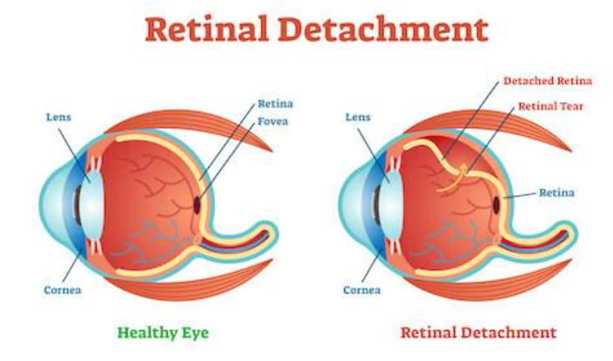 When the retina detaches, the affected area can no longer function properly, resulting in shadows, flashes of light, or the sudden appearance of floaters. If the detachment spreads toward the central retina (the macula), central vision can become distorted or severely impaired. A retinal detachment is considered an urgent condition because prolonged separation can lead to permanent changes in vision. Early detection and prompt treatment of retinal tears may help reduce the likelihood of progression to a detachment, while timely surgical intervention is often required to reposition the retina and support its anatomical alignment.